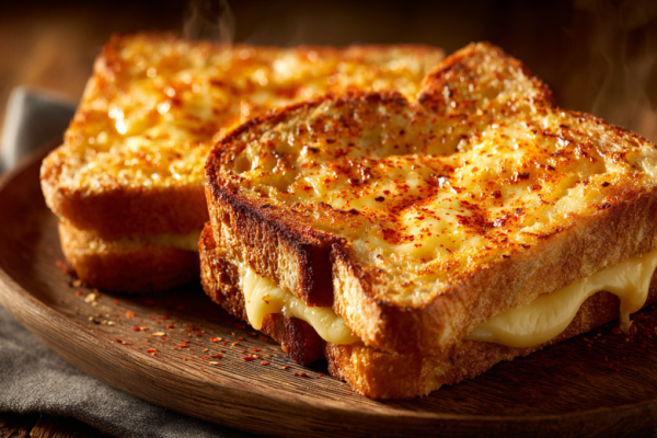 Для приготовления вам понадобится: 4 ломтя белого хлеба, 2 яйца, 100 мл молока, 80-100 г тёртого сыра (чеддер или сулугуни), 1 ч.л. сладкой молотой паприки, соль, сливочное масло для жарки. В миске взбейте яйца с молоком, паприкой и щепоткой соли. Добавьте тёртый сыр и перемешайте. Каждый ломоть хлеба обильно обмакните в сырно-яичную смесь, дав немного пропитаться. Разогрейте сковороду, растопите масло. Обжаривайте гренки на среднем огне по 2-3 минуты с каждой стороны до румяной, хрустящей корочки. Подавайте горячими.