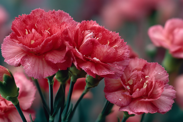 Гвоздика «санфлор ред аллюра» — это многолетник, который поражает своей выносливостью и ярким, продолжительным цветением. Её компактные кустики высотой 20–30 см покрываются множеством мелких махровых цветков насыщенного розово-красного оттенка, собранных в плотные соцветия. Цветение начинается в июне и продолжается до самых заморозков, особенно если вовремя удалять увядшие бутоны.