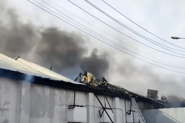 В Тульской области тушат пожар площадью 2800 квадратных метров на складе