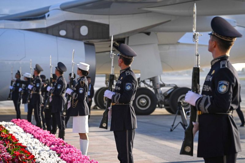 В аэропорту «Восточный» в честь высокого гостя была выстроена рота почётного караула.
