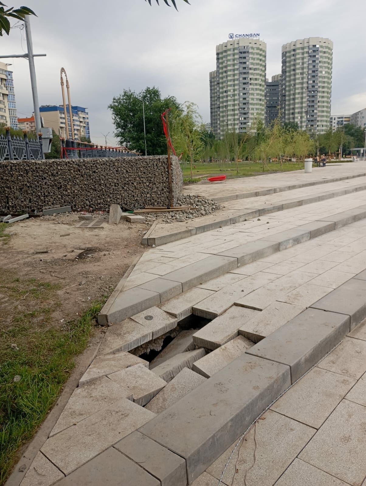 Возмутили явные дефекты в качестве работ: с восточной стороны озера провалились ступени и зияет дыра, а на лестнице, ведущей к улице Толе би, новая плитка уже с большими сколами. А ведь проект стоимостью 12,5 миллиарда не на год и даже не два!