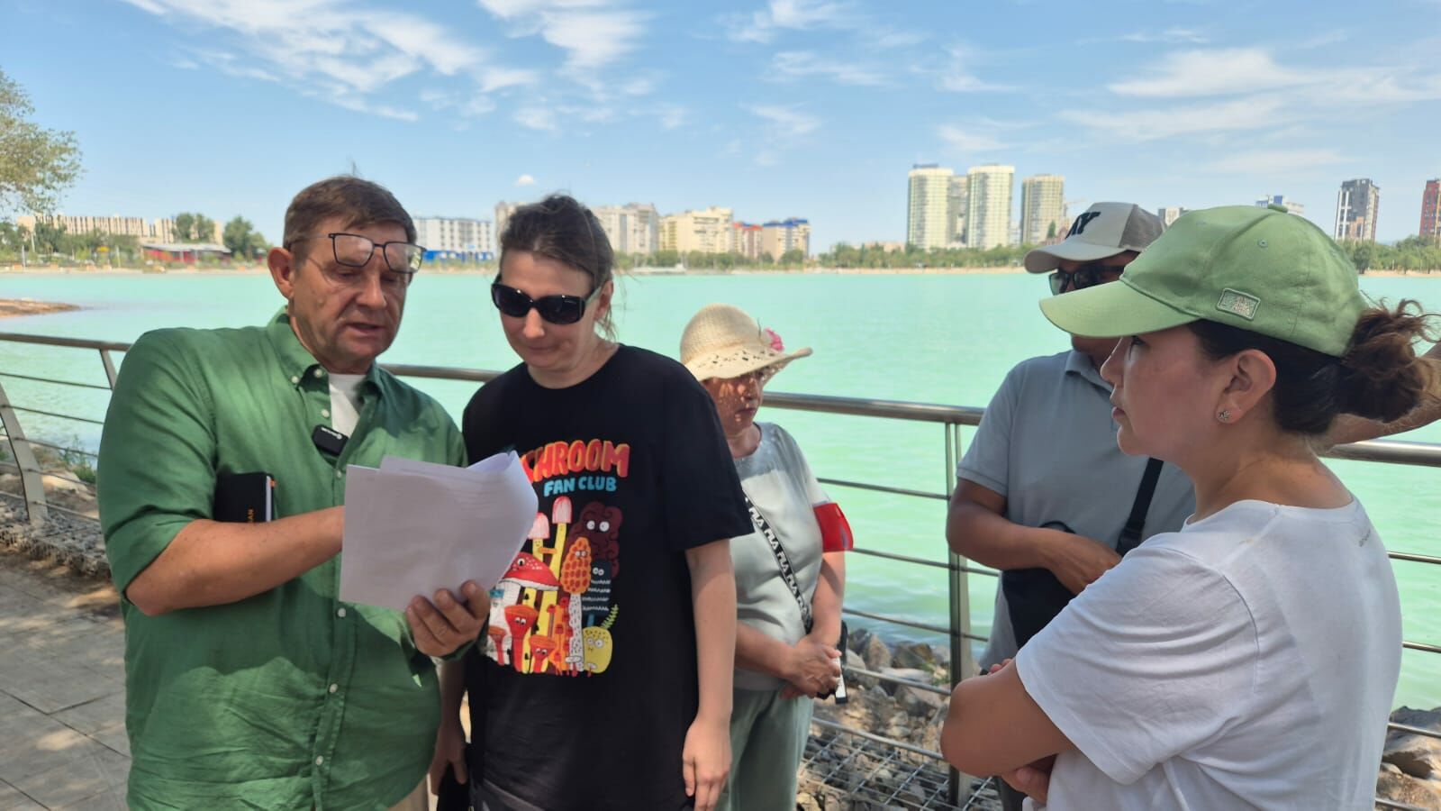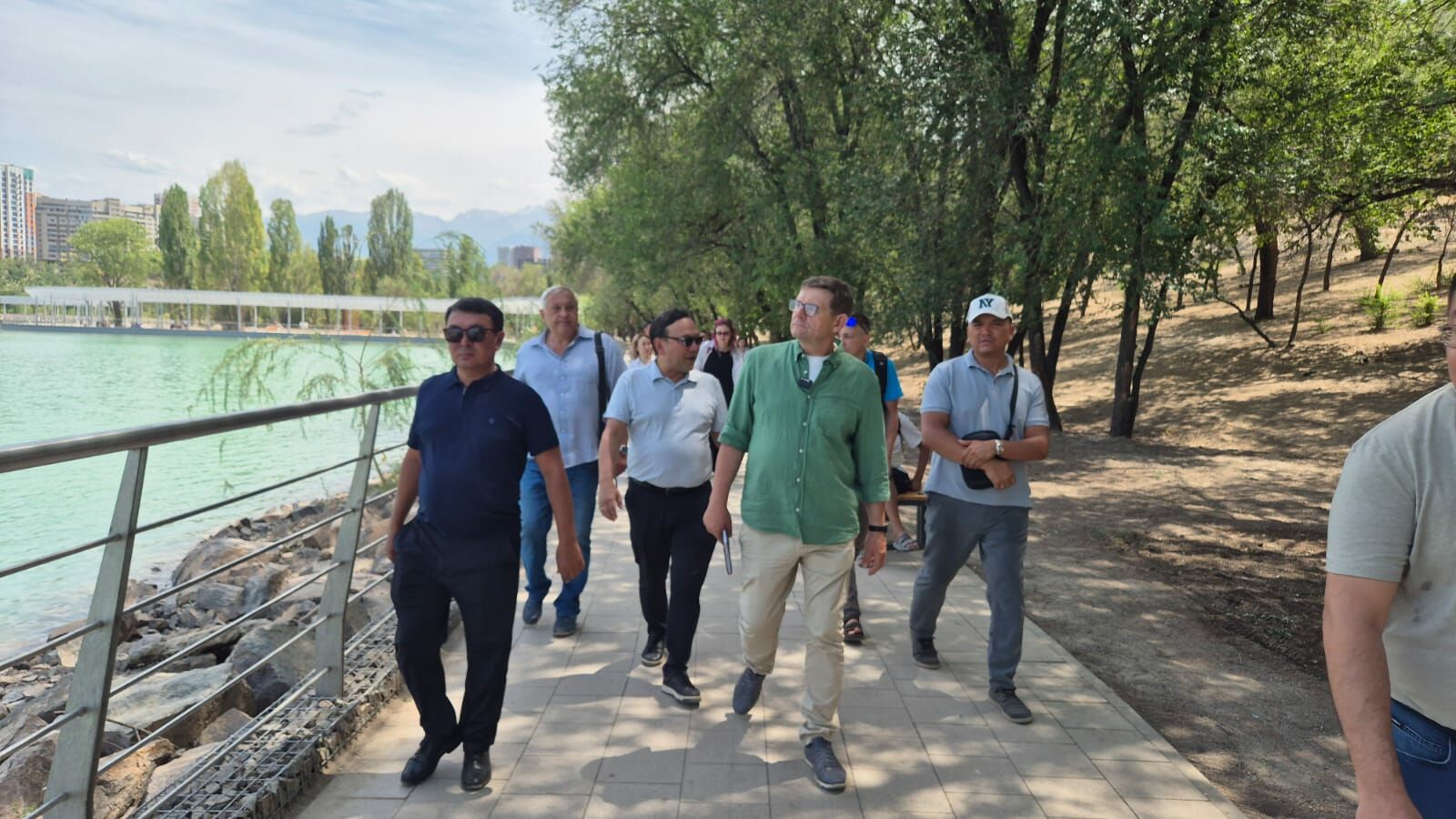 Вместе с коллегами Ерланом СТАМБЕКОВЫМ и Айдосом СЫРЫМОМ он посетил водоем.