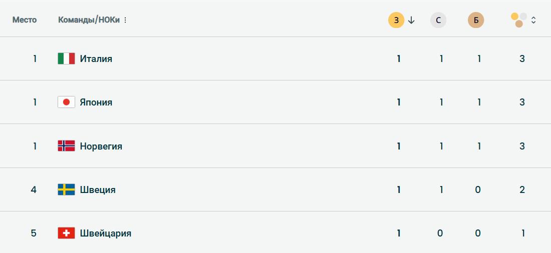 14:52. Первое золото Игр-2026 досталось Швейцарии.
