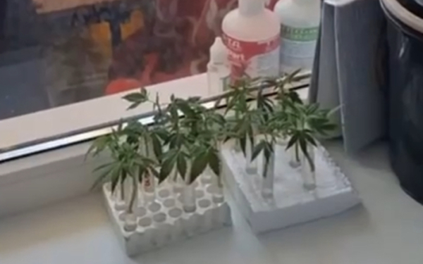 Кроме того, внутри квартиры оперативники нашли 15 отростков растения, помещённых в прозрачные пластиковые пробирки с водой. Отростки предназначались для последующего выращивания новых кустов.