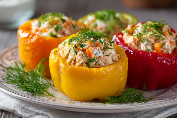 Хрустящие лодочки сладкого перца наполняются нежным салатом из тунца, сырой моркови, сыра и йогурта с пикантной ноткой соевого соуса. Эта вкуснятина идеально подходит для лёгкого ужина или праздничного стола.
