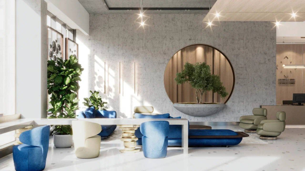 Лобби будет включать три зоны: «почти домашнюю», рабочую и площадку для деловых встреч.