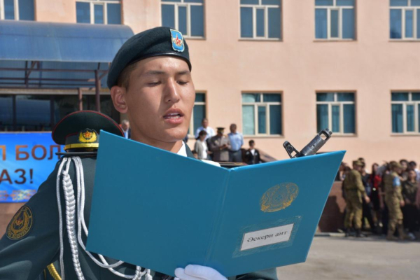 На плацу института перед строем ровными шеренгами выстроились будущие офицеры. После двух месяцев интенсивной подготовки они произнесли клятву на верность Родине и официально вступили в ряды Вооруженных Сил Республики Казахстан.