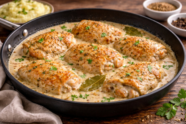 Нежная курица в сливочно-горчичном соусе получается ароматной, сочной и очень насыщенной по вкусу. Простые ингредиенты превращаются в настоящее домашнее блюдо, которое отлично подойдет и для ужина, и для гостей. Готовится легко, всегда удается и не требует сложных продуктов.